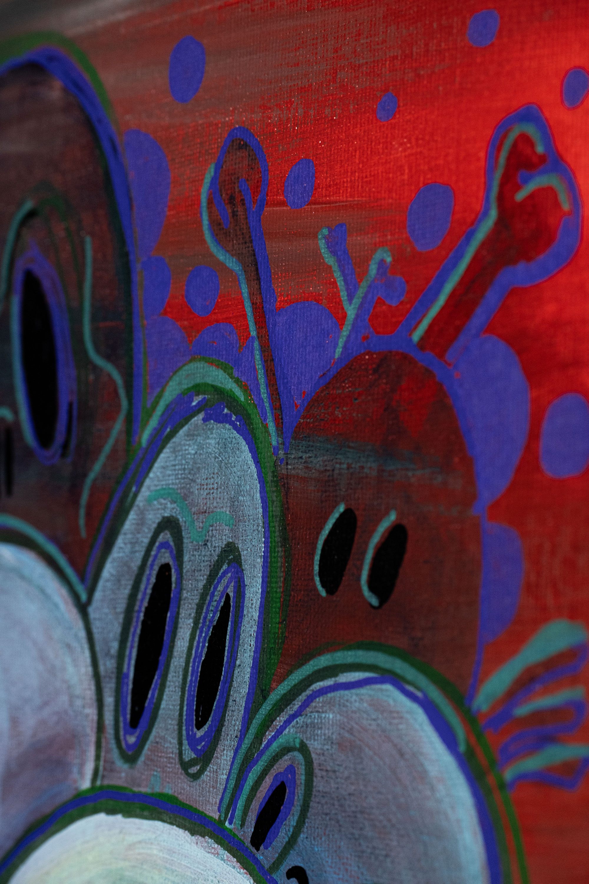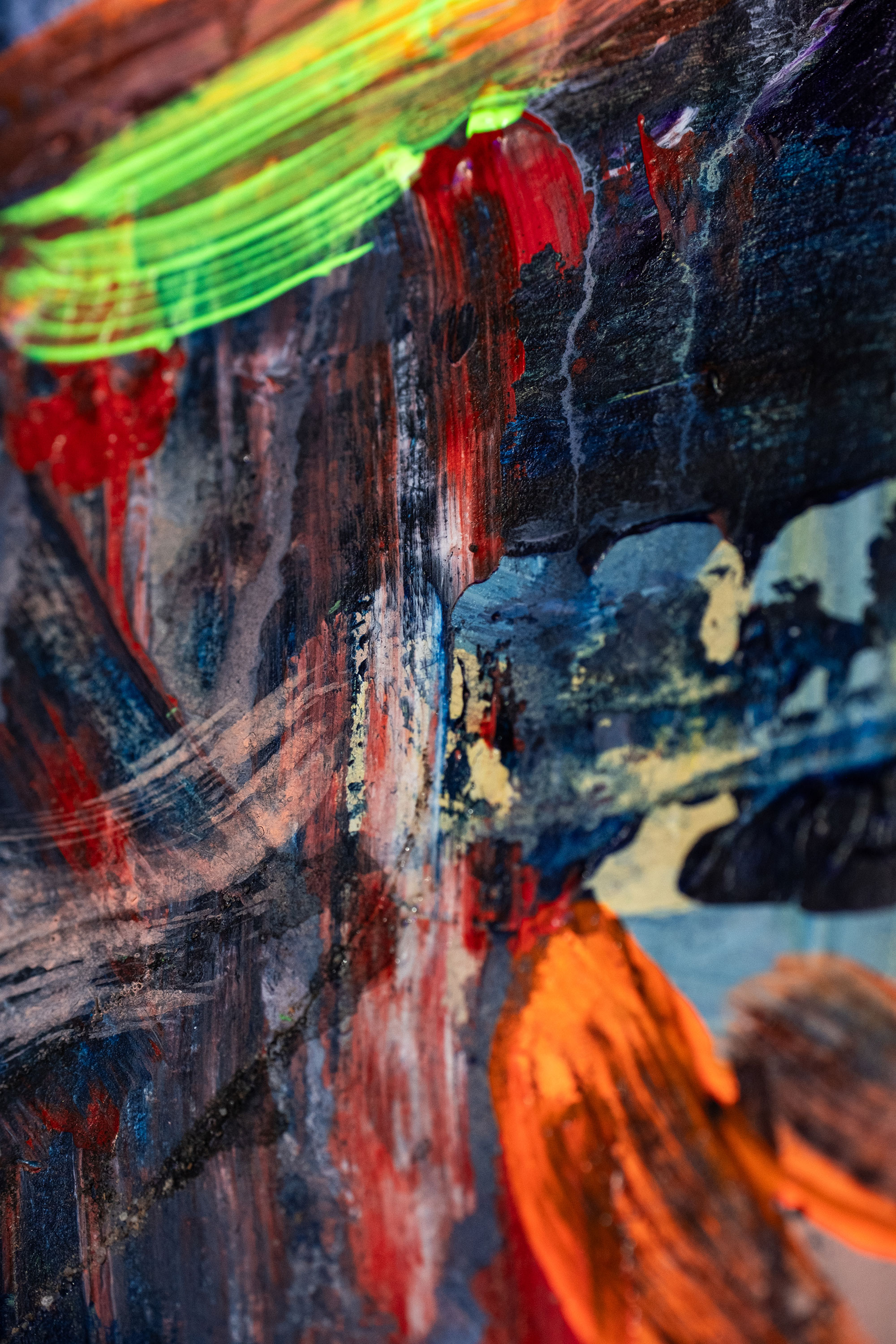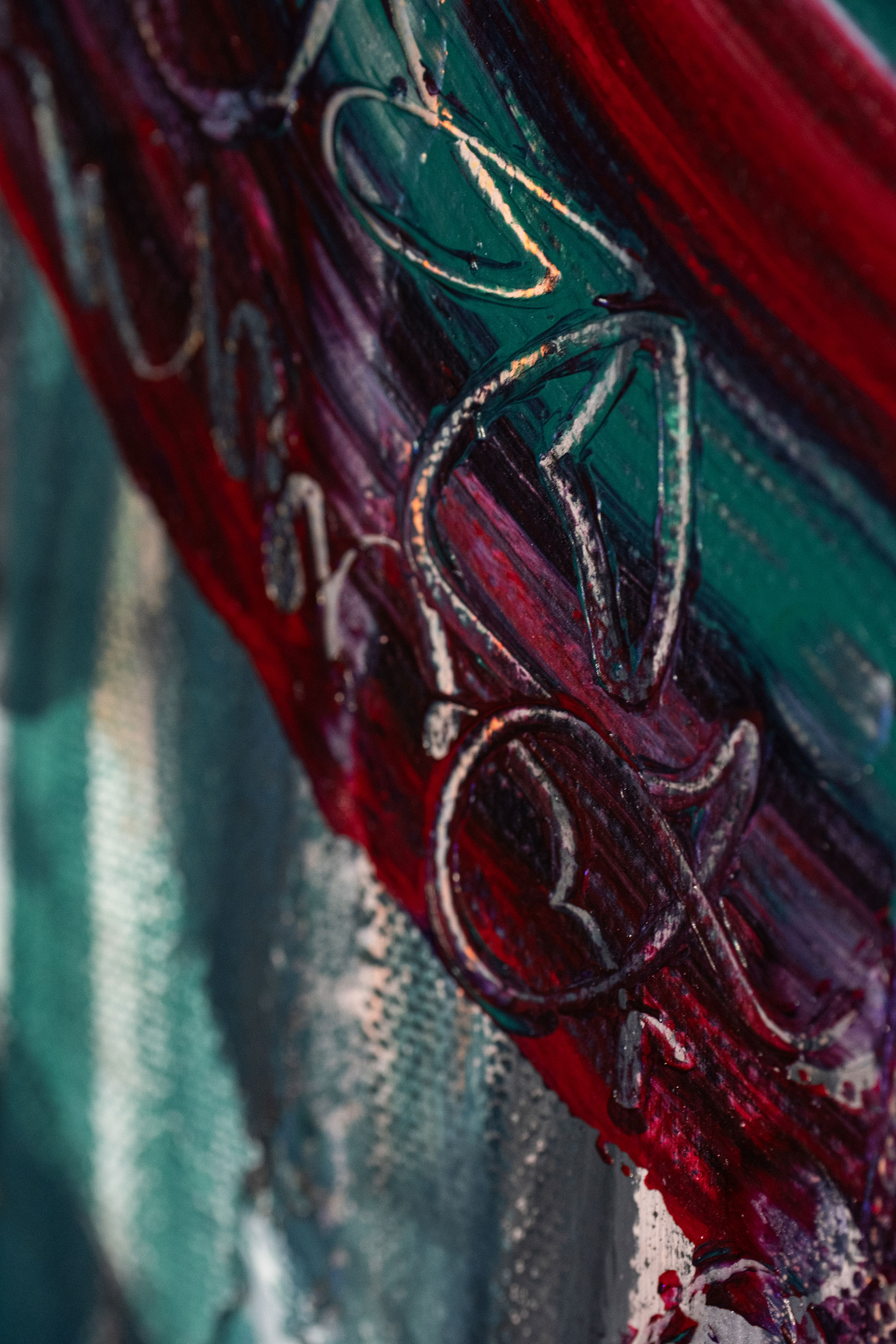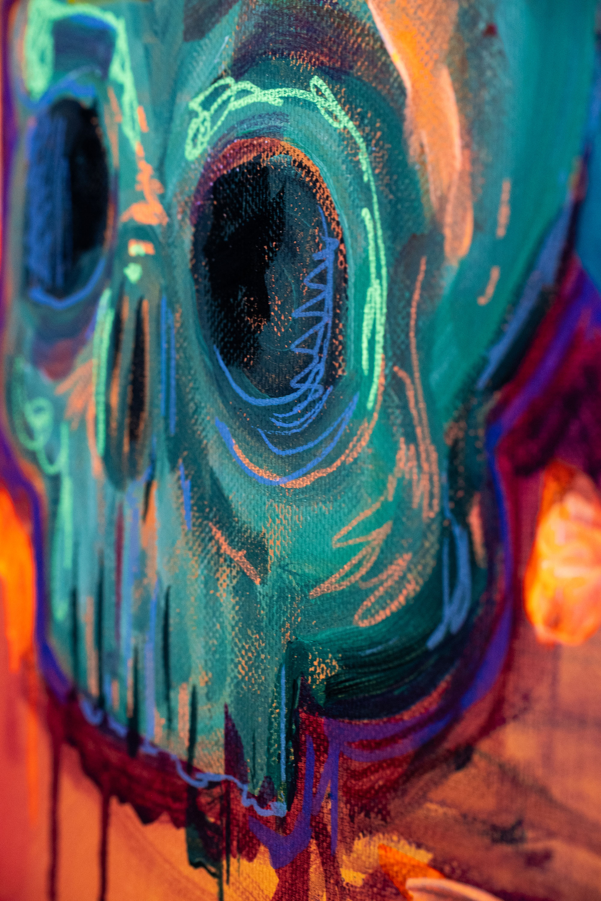 Mich begleitet dieses Thema schon seit vielen Jahren. Erste Acrylgemälde auf Leinwand entstanden 2020, seither wurde die Serie kontinuierlich weiterentwickelt. Ab 2025 kamen neue Mixed-Media-Arbeiten hinzu, in denen ich mit Collage, Ölpastell, Strukturmaterialien und UV-aktiven Farben arbeite. Im Schwarzlicht offenbaren viele Werke eine zusätzliche, fast surreale Wirkungsebene.