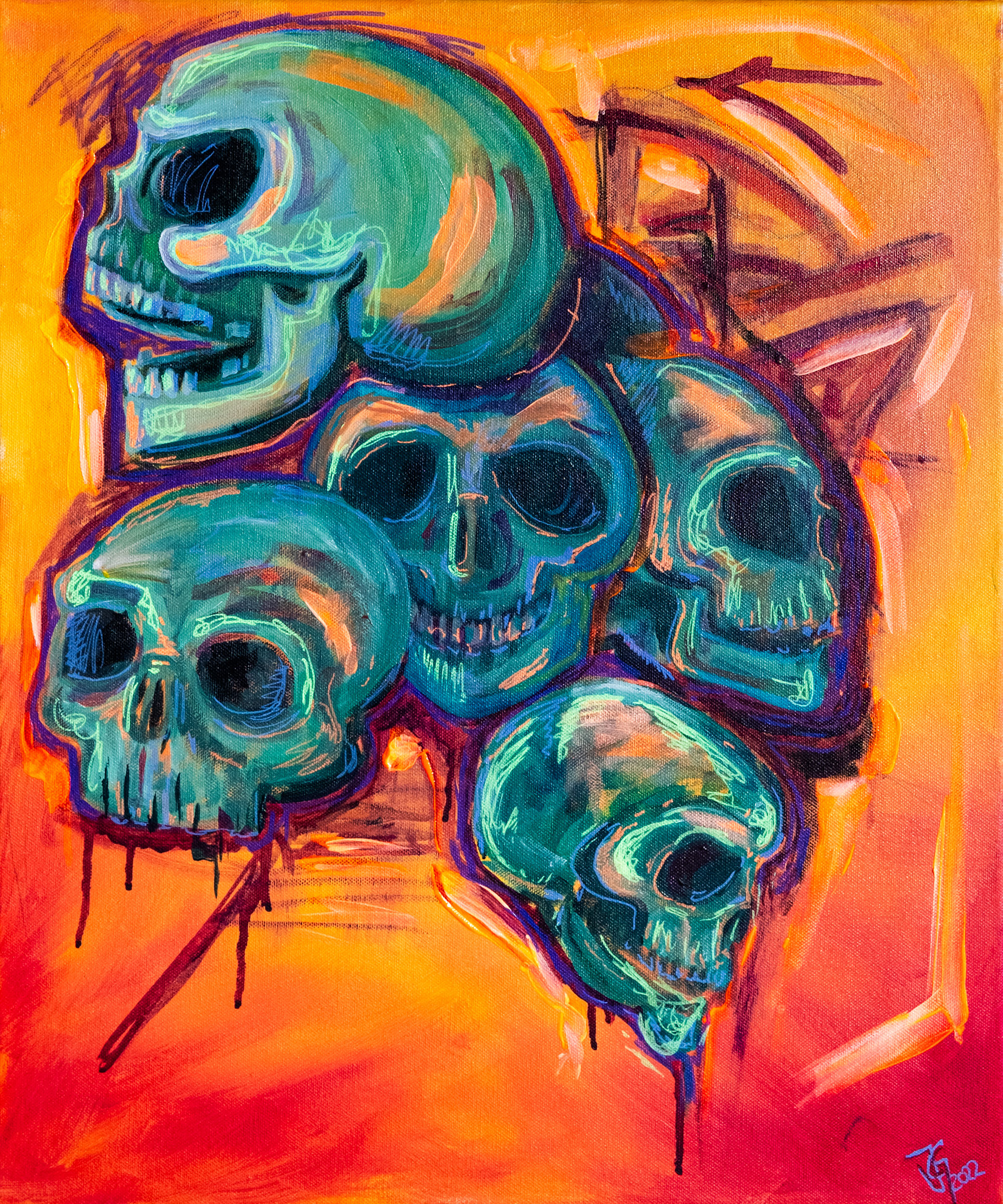 SKULLS erscheint in verschiedenen Formaten und Techniken – mal plakativ, mal filigran – und bewegt sich stilistisch zwischen Ernst und Augenzwinkern. Die Serie versteht sich als künstlerische Auseinandersetzung mit einem vielschichtigen Symbol: einem Motiv, das trotz oder gerade wegen seiner kulturellen Überladung immer wieder neu interpretiert werden kann.